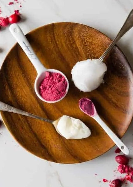 Beetroot, cocoa butter, shea, almond oil — ingredients from our kitchens, not a lab.