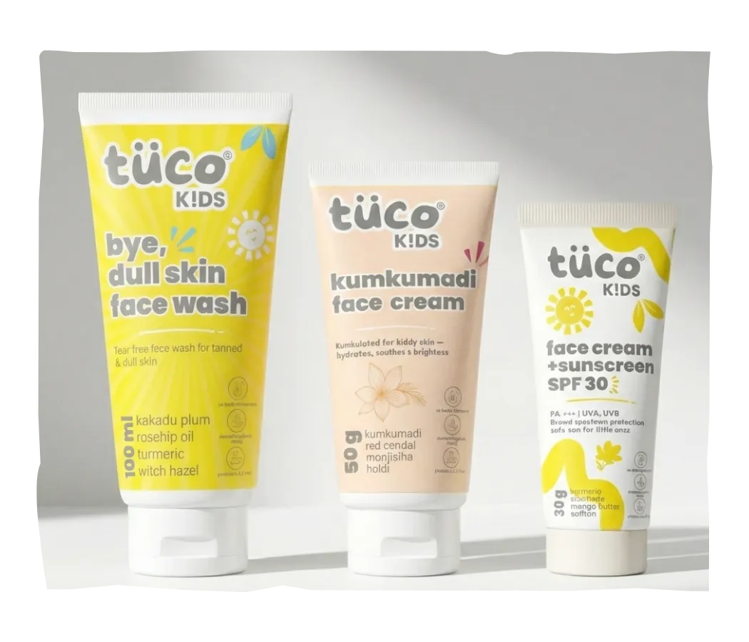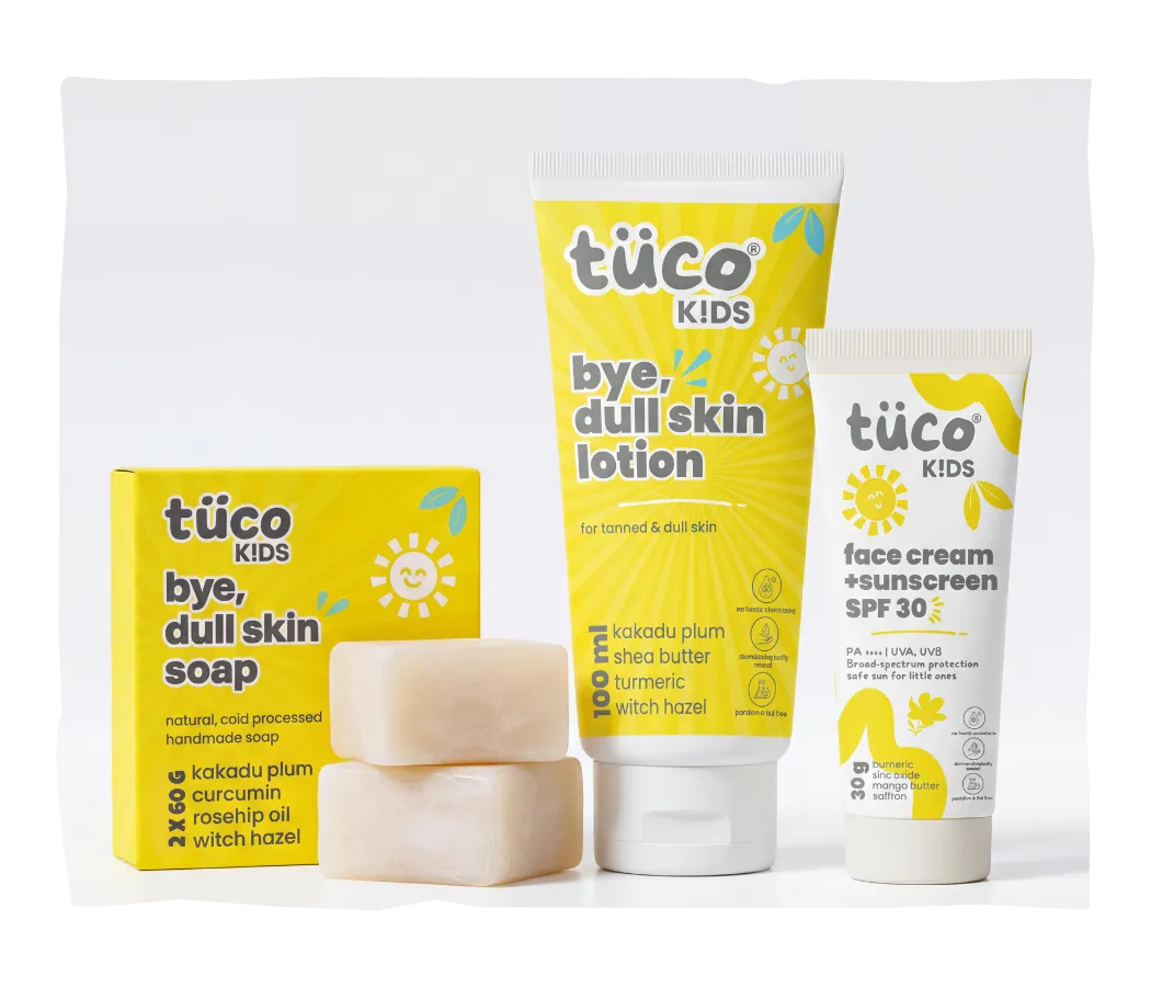 With turmeric, kakadu plum, kumkumadi & mango butter - brightening, calming, made for real kid skin!