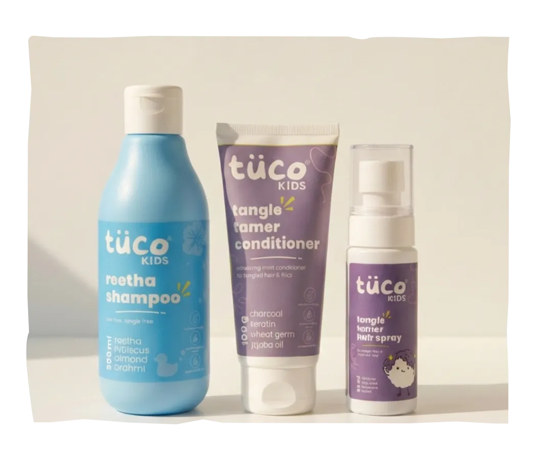 Tuco's 3-step anti-frizz routine is a haircare routine that leaves your kid's hair smooth & tangle-free!