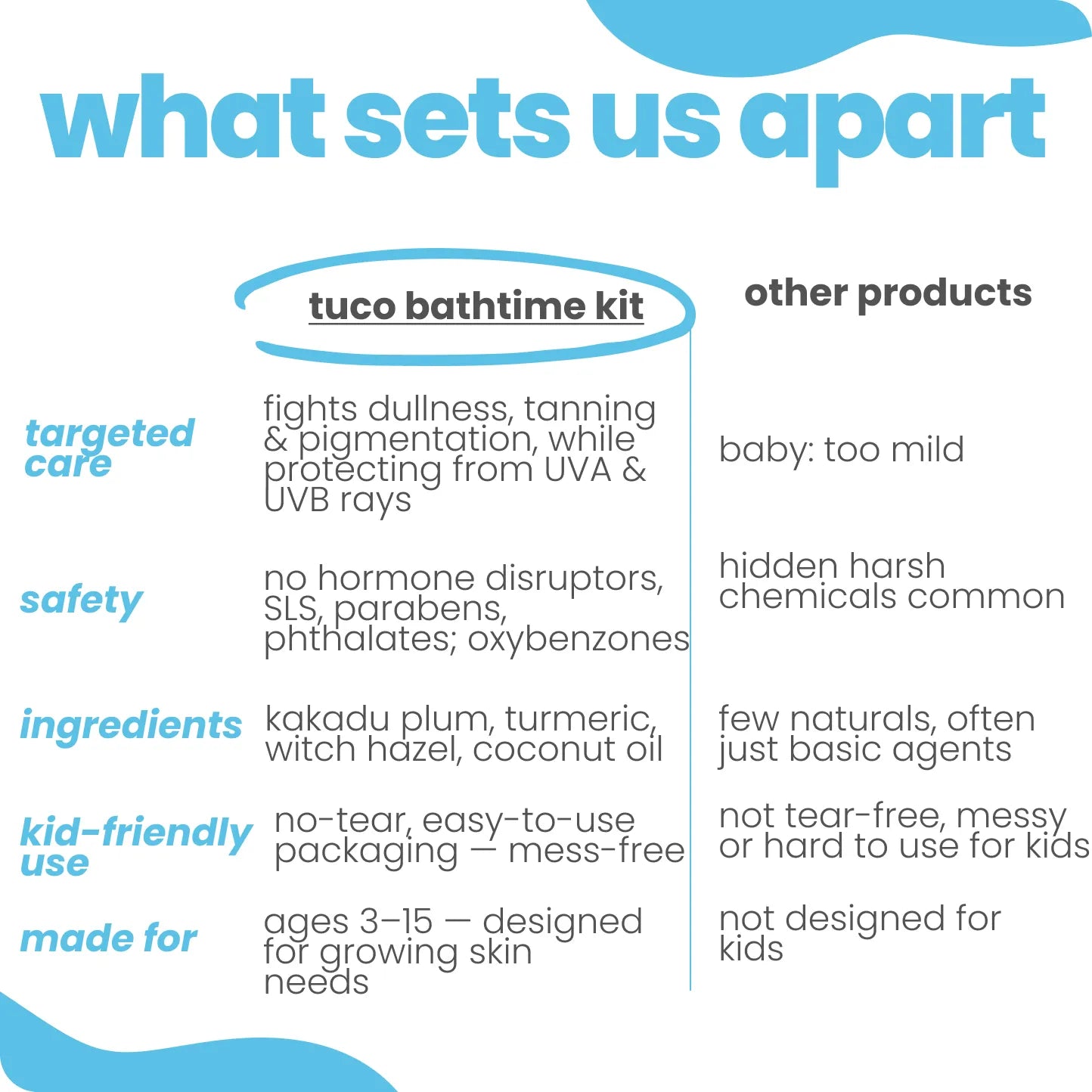 The Bathtime Gift Pack is designed for kids aged 3-15 years, providing gentle care for their skin and hair.