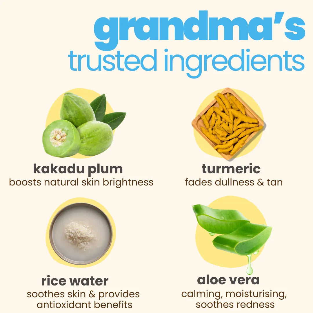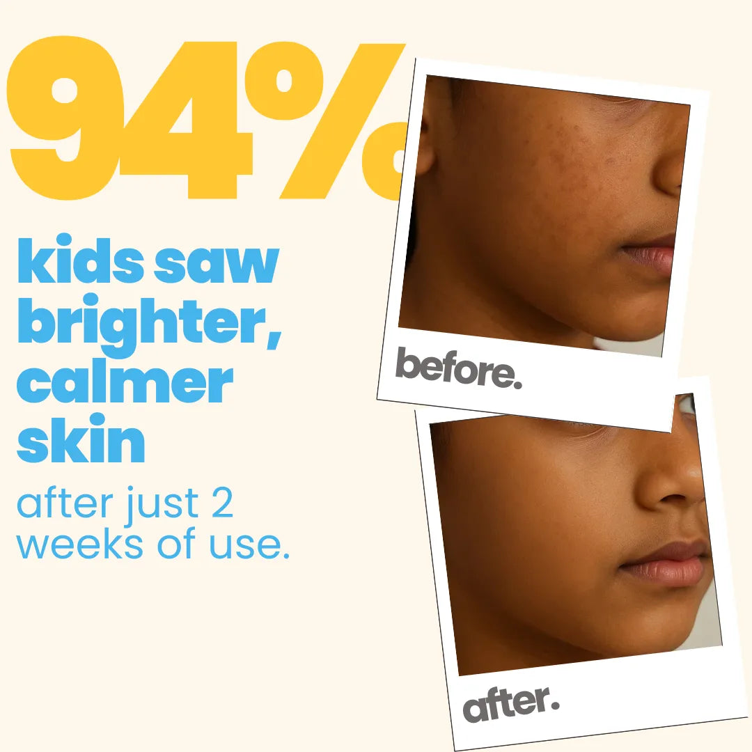 Our bright skin range is perfect for skin with dull, discoloured spots and kids who have darker skin due to tanning and sun damage. The Face wash has Kakadu Plum and Safflower Oil and the Sun-screen has Saffron and Licorice Root. These products, full of natural Vitamin C, kesar and turmeric that helps restore kid’s natural skin tone and adds back a natural glow