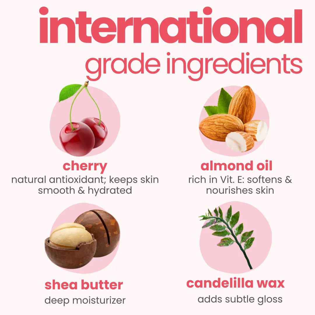 The cherry tint has a light, natural red-pink hue that builds up beautifully without looking unnatural, and the lip balm is so gentle & hydrating - my 8 year old loves them both. Super happy with the purchase