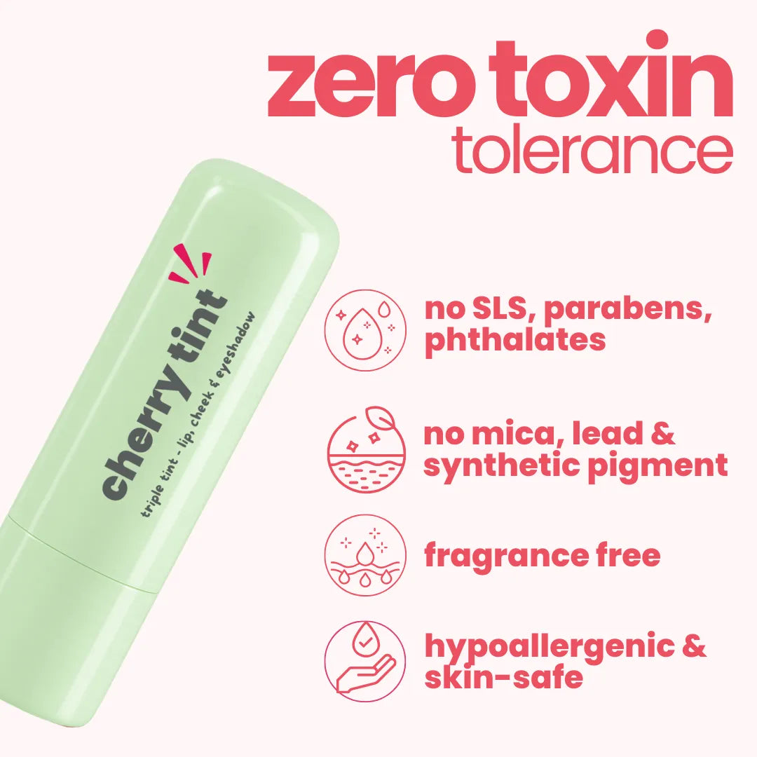 🌱 Tuco Cherry Triple Tint — a gentle, multi-use tint for lips, cheeks and eyes, made with natural colour and a soft, nourishing finish.