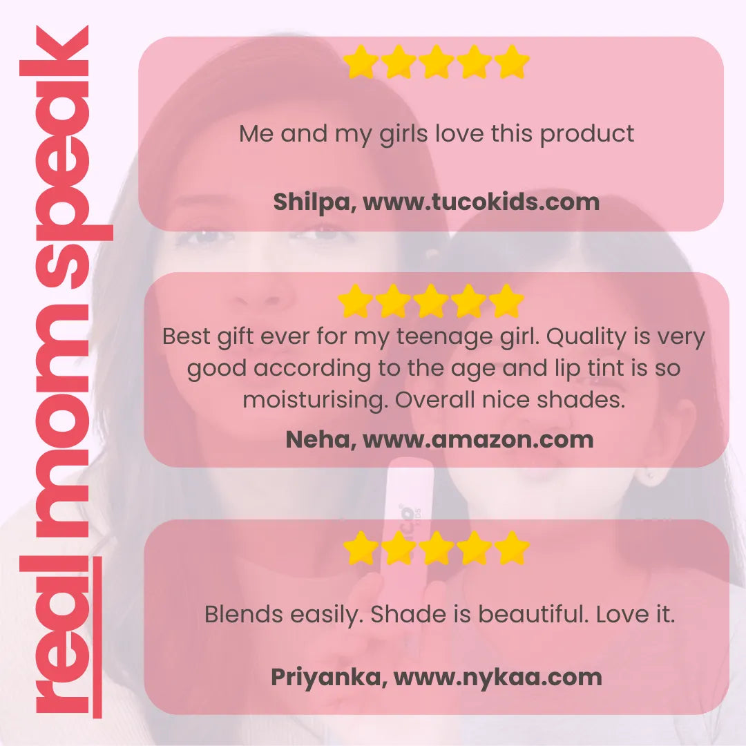 Most adult tints use strong pigments, fragrances, mica and harsh additives that irritate young skin and aren’t made for kids.