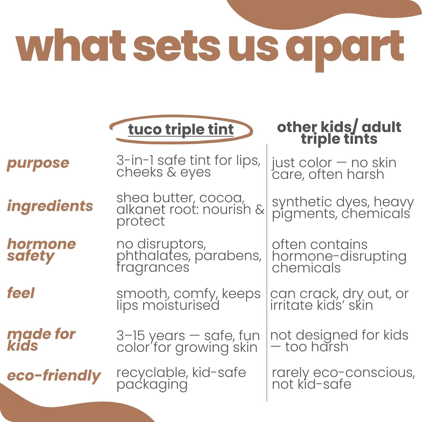 The Tuco Intelligent Kids Lip & Cheek Tint is designed for kids from the age of 3 and above. While formulated for kids, adults can also benefit from its natural tint and moisturizing properties.