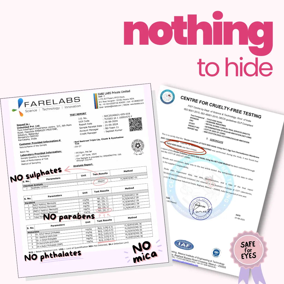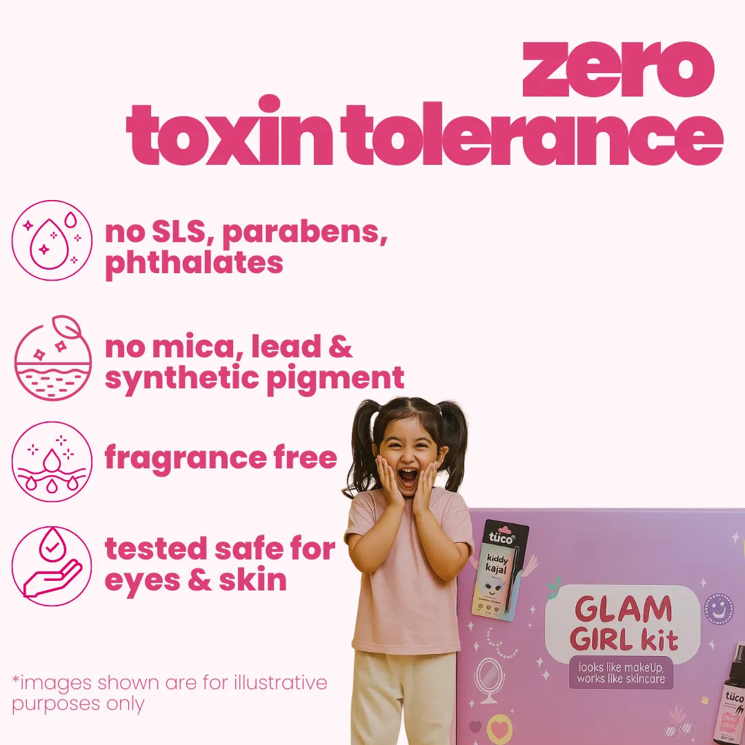 Let your child play glam safely with the Tuco Kids Glam Girl Kit: Beetroot Triple Tint + Fresh Body Mist + Kiddy Kajal — a playful, safe makeup set made just for little ones. This 3-in-1 combo includes: