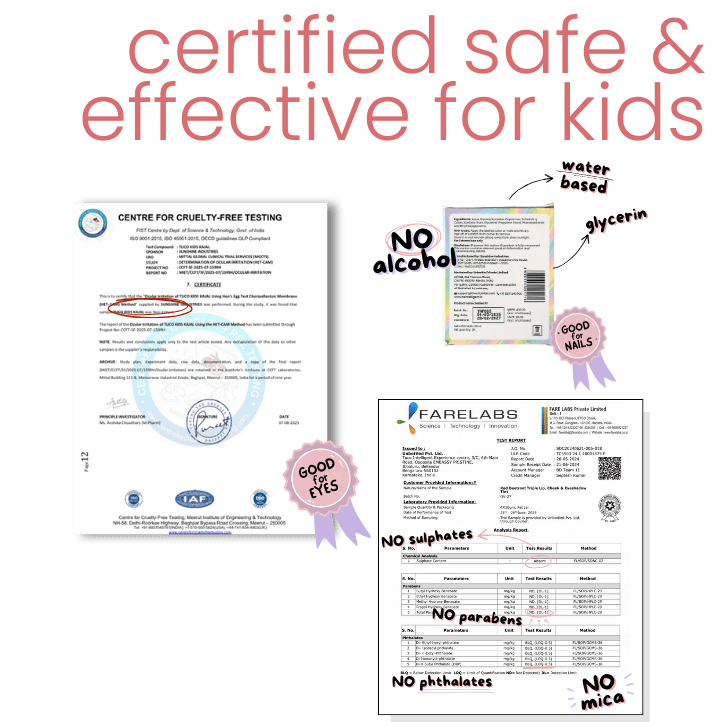 That’s why we created the Tuco Kids Safe Makeup Kit — it looks like makeup, but works like skincare. Packed with natural tints, nourishing oils, and zero nasties, it’s safe, fun, and dermatologist-tested for kids aged 3–15. Trusted and loved by over 1L+ moms across India.