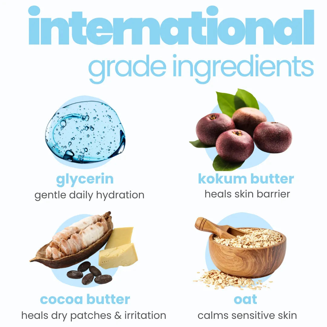 Yes. Butters like kokum butter and cocoa butter soothe dryness, while marshmallow and oat extracts help calm irritated skin.