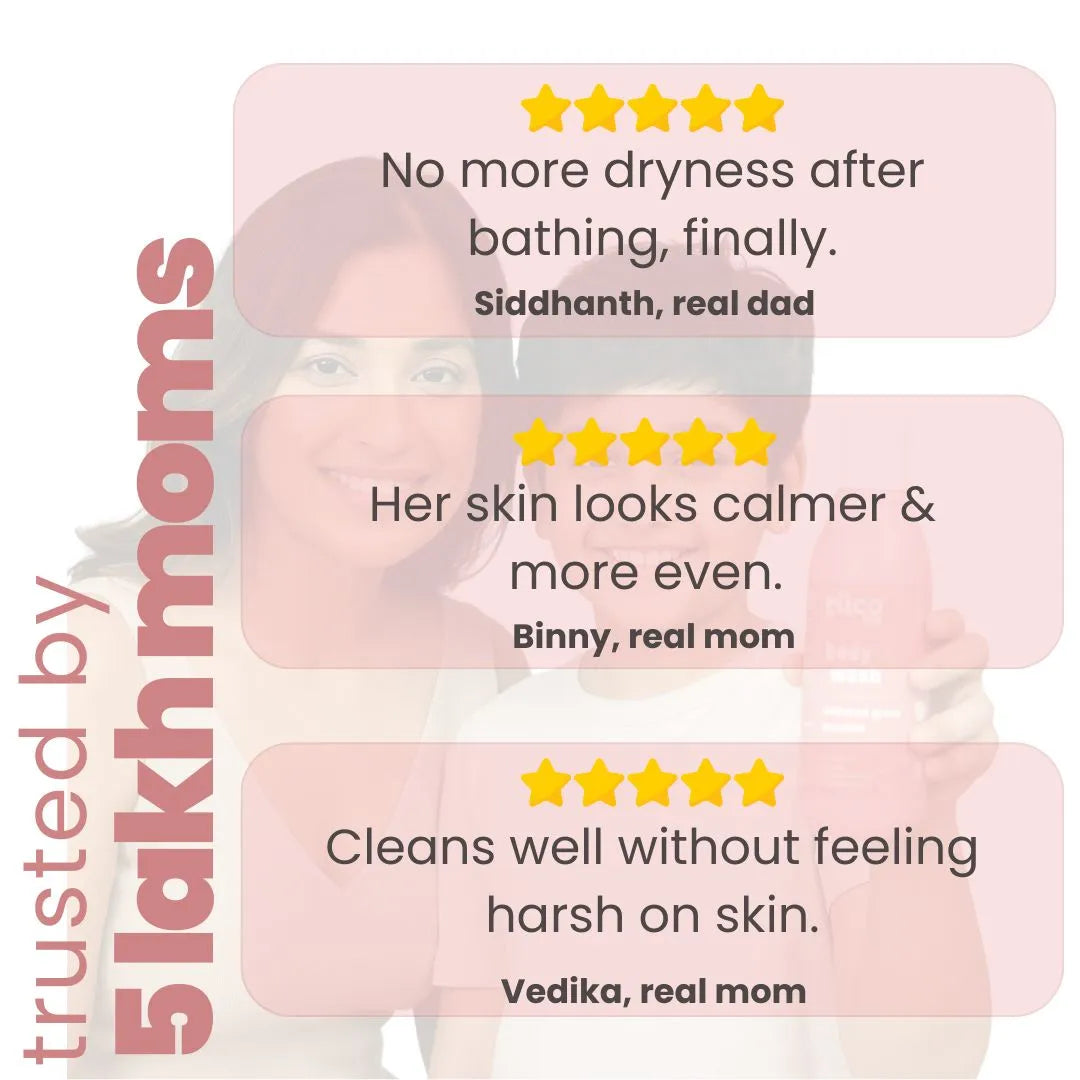 Unlike harsh soaps or synthetic cleansers, this gentle shower gel for kids is made with natural ingredients like Tulsi, Saffron, and Sandalwood that cleanse without stripping away moisture, leaving skin soft and healthy after every bath.