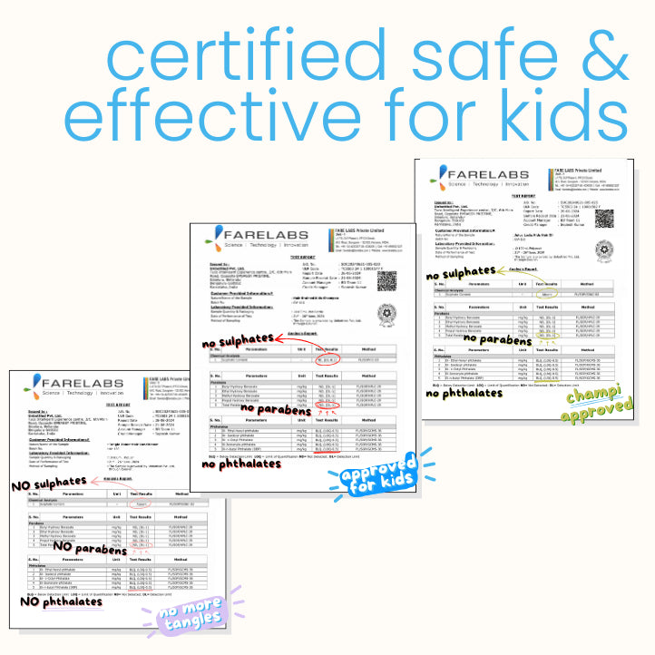 Most brands of shampoo in India are designed for adults and often contain sulphates, parabens, and phthalates. These harsh chemicals can strip natural oils, leave the scalp itchy, and make hair dry or tangled — especially with daily use. The Tuco Kids Ultimate Hair Care Kit is made for children, using gentle shampoo ingredients and sulphate-free formulas that clean, nourish, and protect growing hair without damage.