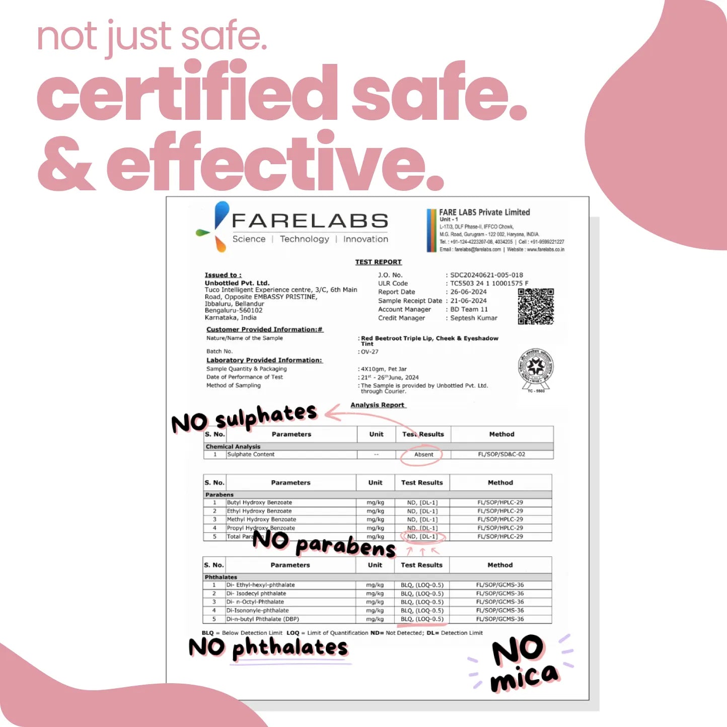 Absolutely, this 2-in-1 tint is 100% natural and safe to use on kids' lips and cheeks. It's formulated with organic beetroot powder, shea butter, alkanet root powder, and beeswax, providing a natural and subtle tint while moisturizing and protecting the skin and lips.