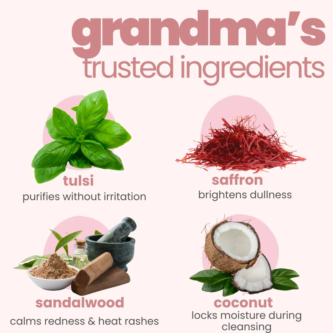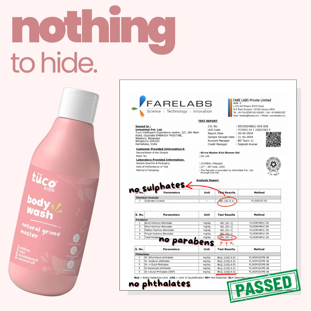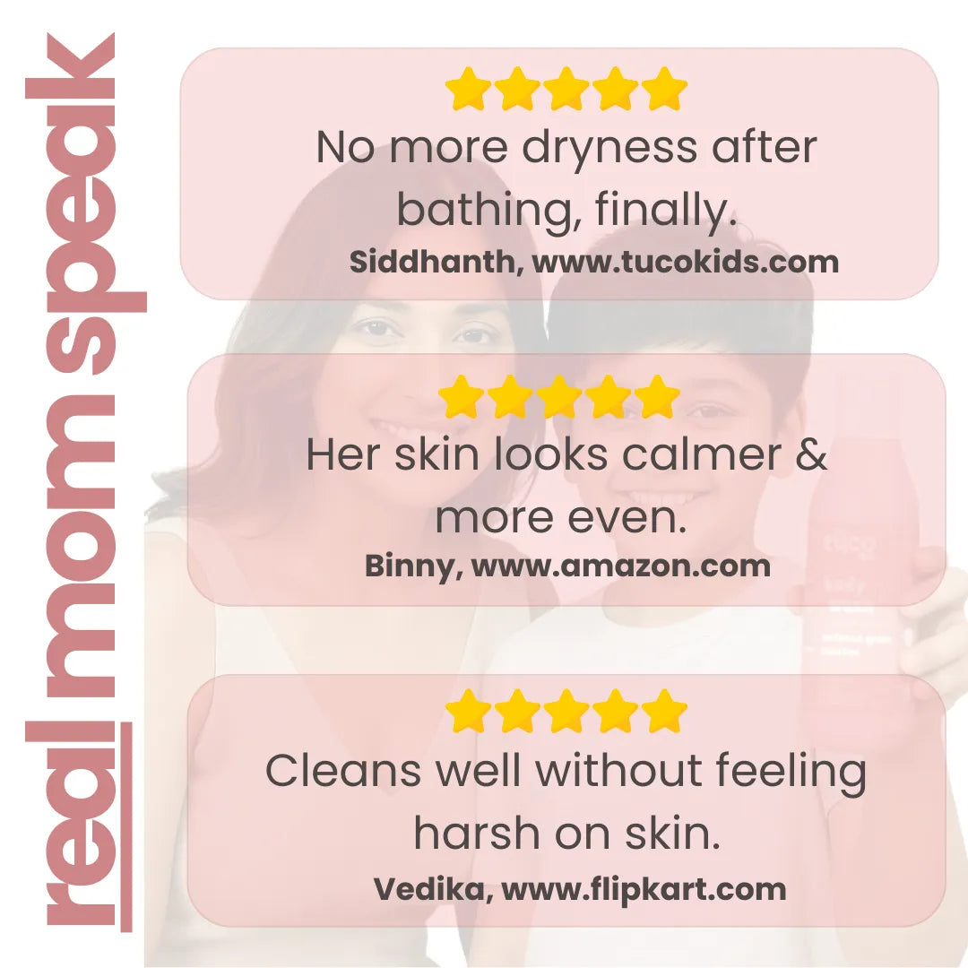 Unlike harsh soaps or synthetic cleansers, this gentle shower gel for kids is made with natural ingredients like Tulsi, Saffron, and Sandalwood that cleanse without stripping away moisture, leaving skin soft and healthy after every bath.