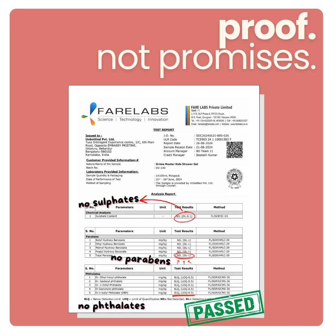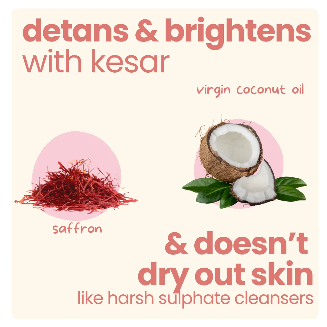 Unlike harsh soaps or synthetic cleansers, this gentle shower gel for kids is made with natural ingredients like Tulsi, Saffron, and Sandalwood that cleanse without stripping away moisture, leaving skin soft and healthy after every bath.