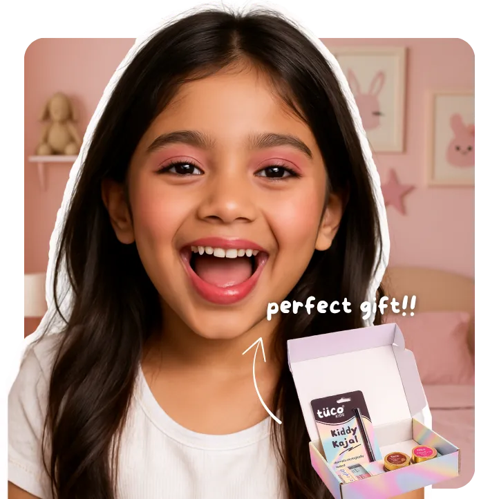 Yes! The Tuco Kids Glam Makeup Box is made with safe, natural ingredients like beetroot, cocoa, and plant-based oils, and is free from harsh chemicals, parabens, and artificial fragrances, making it perfect for kids aged 3 and up.