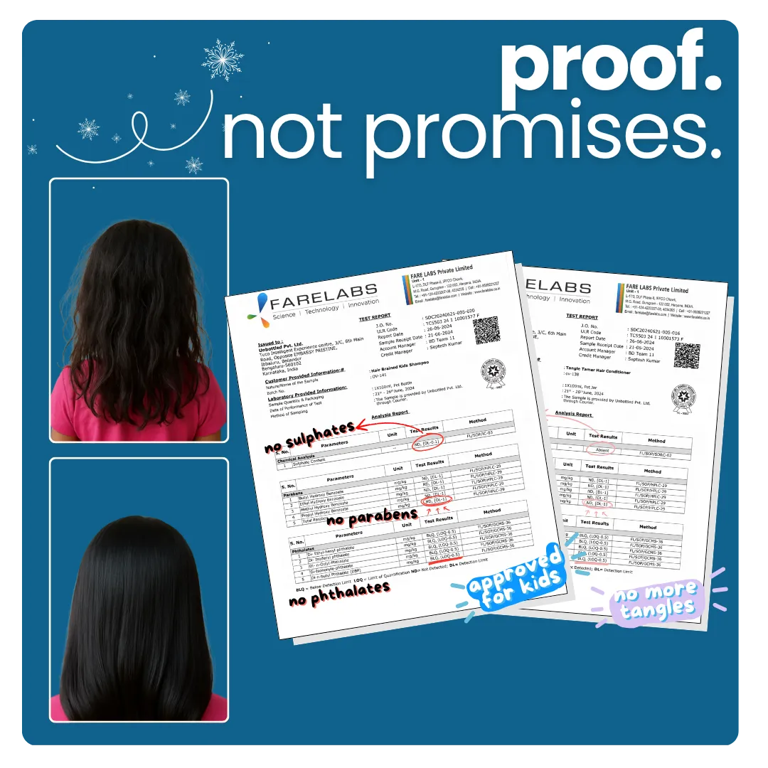This kit is formulated with kid-safe, natural ingredients like Aloe Vera, Carrot Oil, and Reetha to hydrate, nourish, and protect winter-dry skin and scalp. It keeps your child’s hair smooth — all season long.