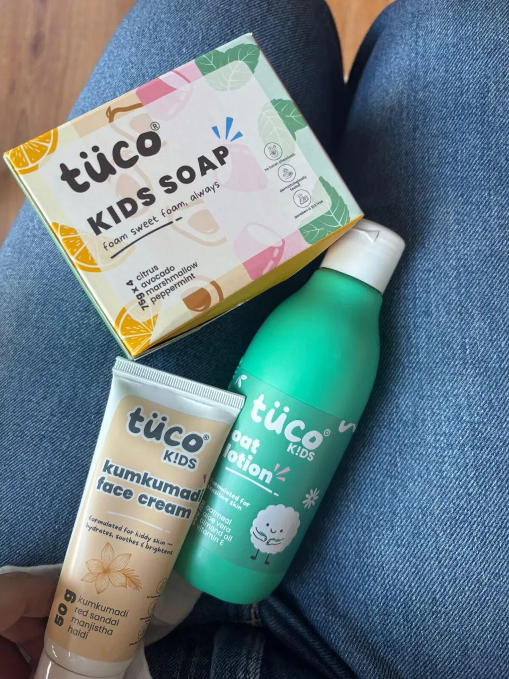 Our kids lotion is formulated to fight common skin concerns such as dryness, irritation, and inflammation. It contains natural ingredients like Kokkum oil, Oud oil, and Sweet Lemon oil that help to soothe and protect the skin.