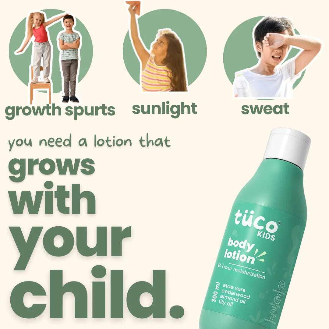 Our kids lotion is formulated to fight common skin concerns such as dryness, irritation, and inflammation. It contains natural ingredients like Kokkum oil and Sweet Lemon oil that help to soothe and protect the skin.